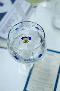Serve in a big G+T glass and garnish with a Pansy flower.